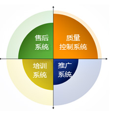 質(zhì)量控制系統(tǒng)、售后服務(wù)系統(tǒng)、應(yīng)用培訓(xùn)系統(tǒng)、獨(dú)特的市場推廣系統(tǒng),讓經(jīng)銷商60天內(nèi)快速賺錢